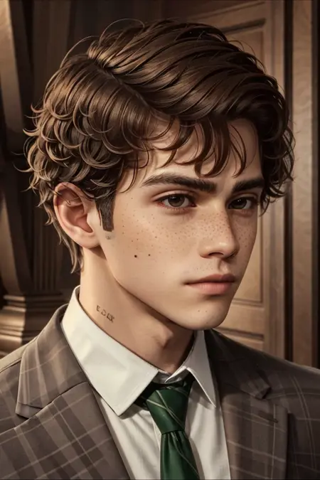 Basic Prompt: ponysallow/Sebsallow, 1boy, freckles, mole, brown hair, messy hair