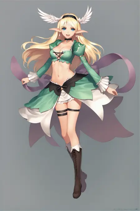 这个模型拥有很好的画风模仿效果,训练图片全部来自该画师的原画集。