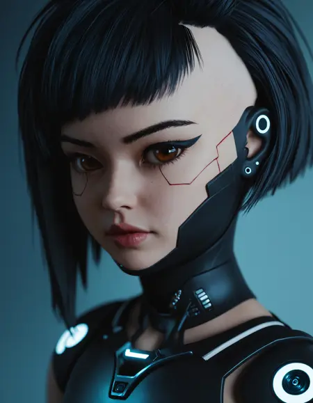 注意:由于 SDXL 在赛博朋克风格上存在固有缺陷,黑点(螺钉/螺母)可能导致结果略显杂乱,但通常可通过后期处理或修复工具轻松修正。其次,由于我使用的训练数据集,模型倾向于生成塑料感或3D效果的皮肤,这符合赛博朋克叙事,但并非所有人都会喜欢。