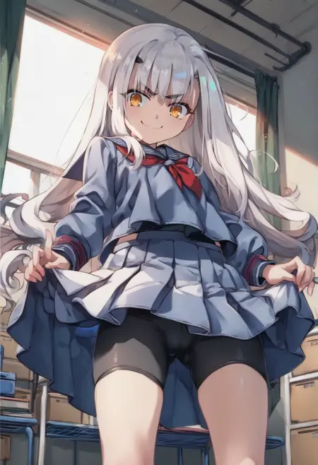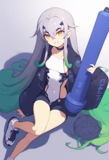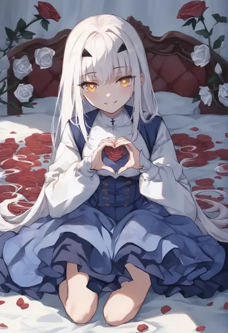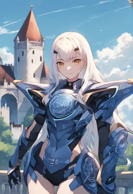 Core tags: forked eyebrows, white hair, long hair, gradient hair, yellow eyes, v-shaped eyebrows,