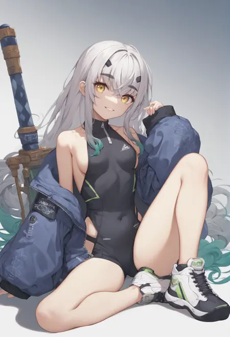 Core tags: forked eyebrows, white hair, long hair, gradient hair, yellow eyes, v-shaped eyebrows,