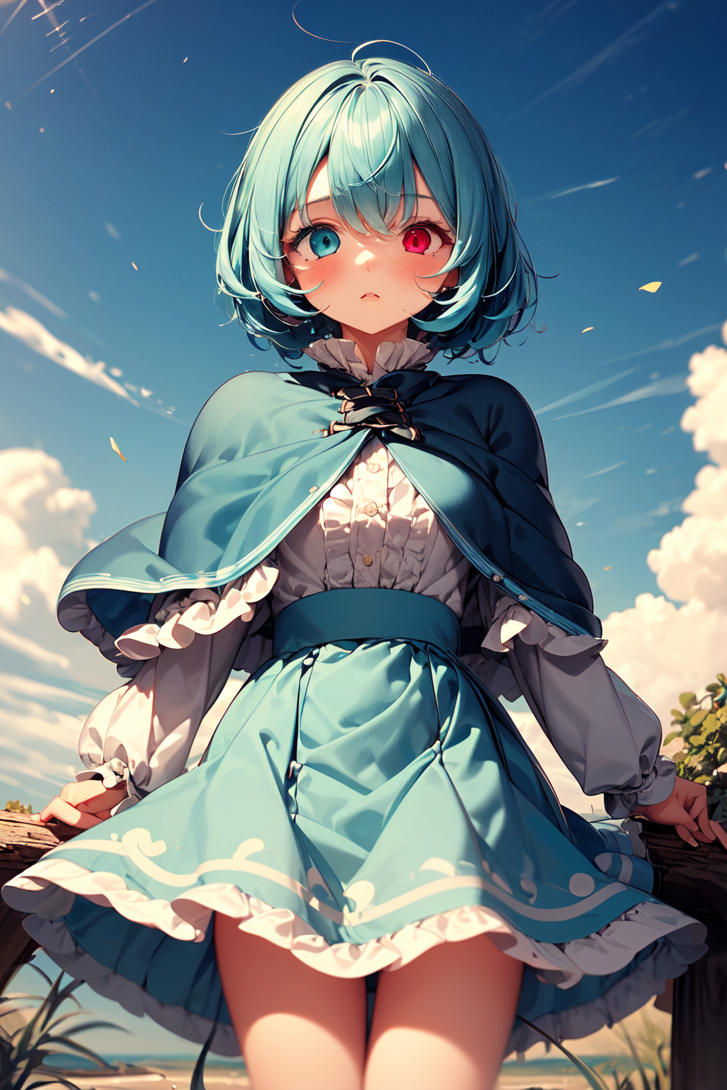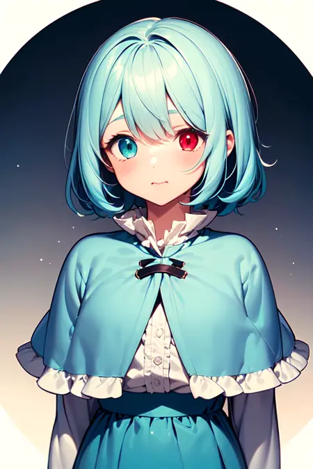 Capelet problem fixed in 2b. But hair is a little wrong. It's cute tho, so maybe I will just keep it. Skirt sometimes becomes white too. That's another problem.