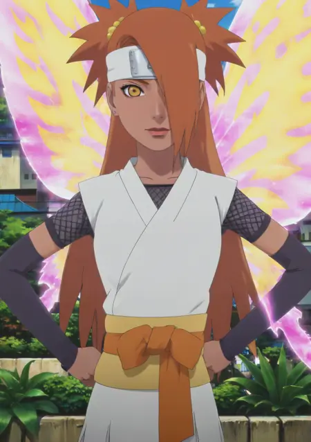 옷 프롬프트: 더블 둥, 흰색 띠, 주황색 리본, 검은색 팔 보호대, 피시넷 (참고: 이는 Lykon의 "AAM XL (Anime Mix)" 외의 모델을 사용할 때만 필요합니다. 긍정/부정 프롬프트에 추가하여 그녀의 스타일을 조정해 보세요.)