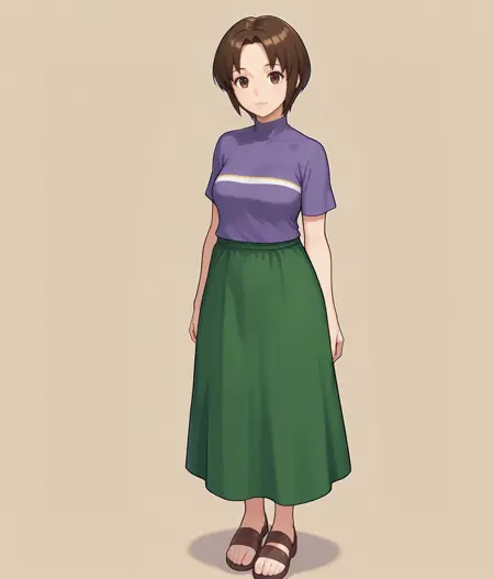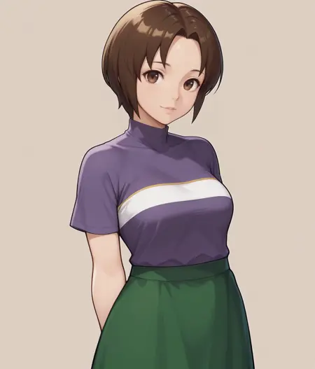 SD 1.5 lora works best with 0.9 - 1 Strength, any lower than 0.9 and her clothing and hair become generic. The dataset was small and contains quite a bit of simple flat colored artwork, so the Lora can have a tendency to replicate that. :(