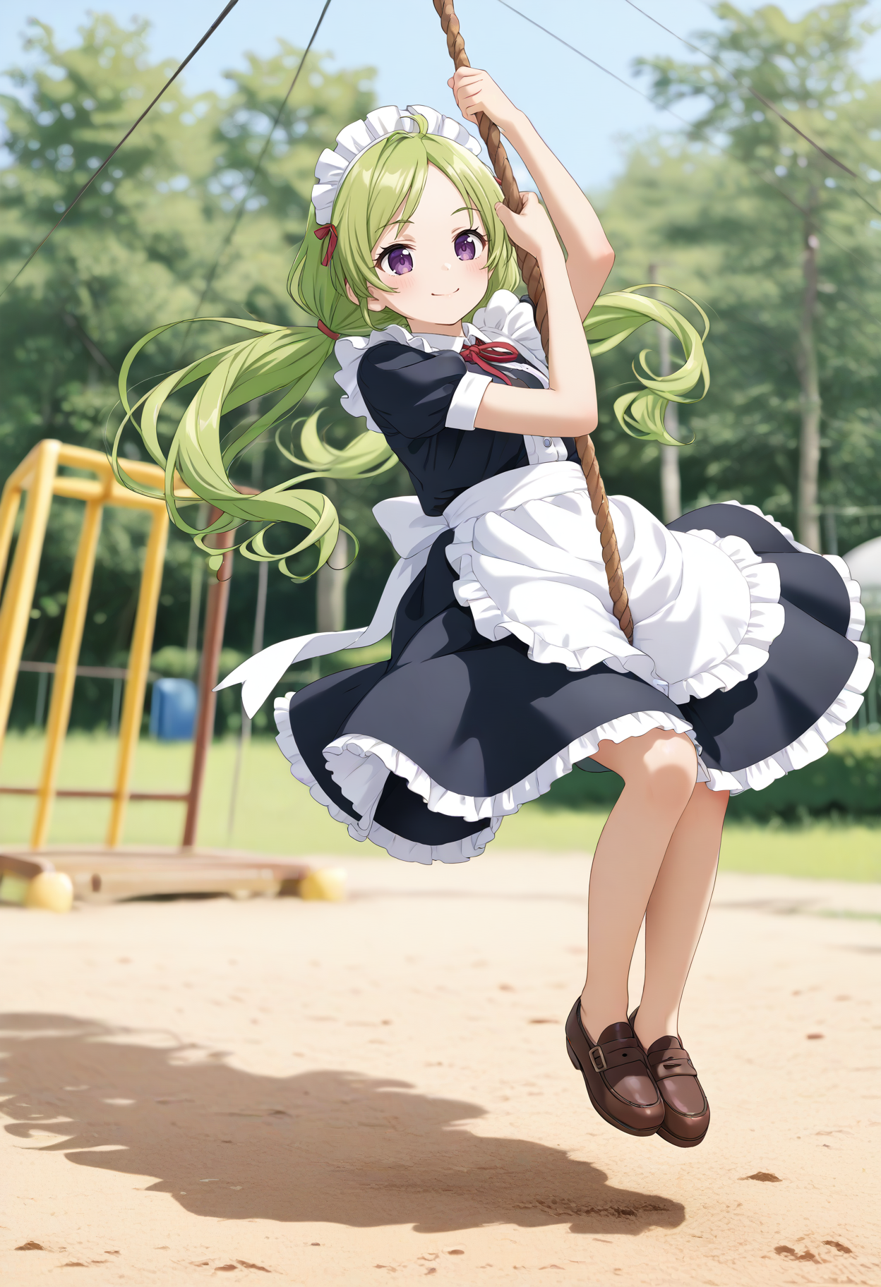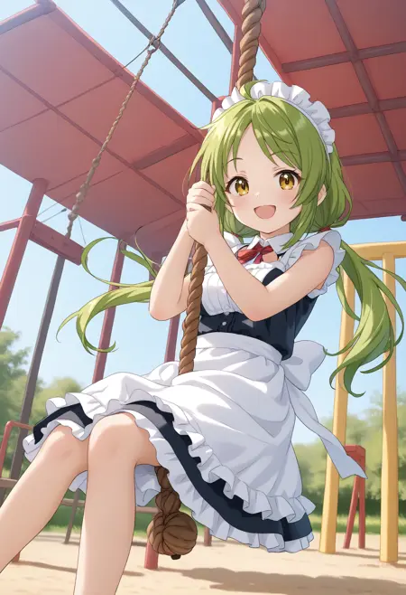 日本の公園に設置してある滑車上に吊るしてあるロープに掴まり移動を楽しむ遊具のLoRAです。