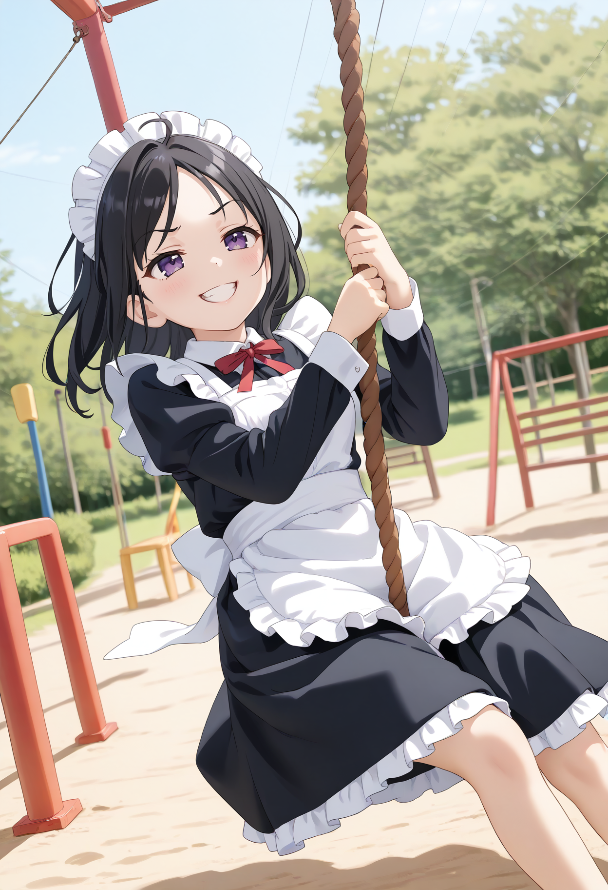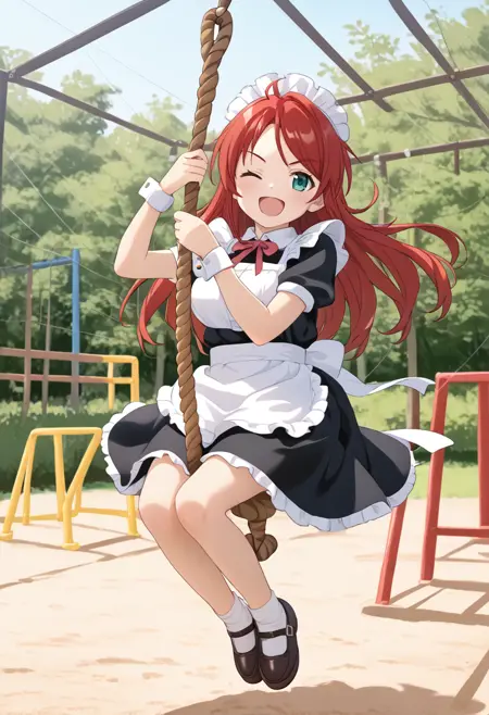 We recommend adding "outdoors," "day," and "playground" to give a sense of realism.