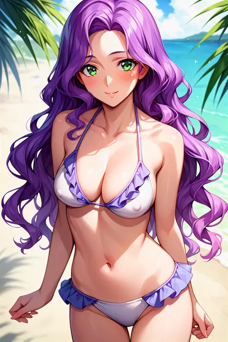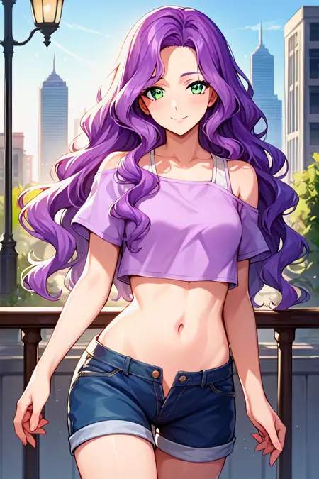 トリガー単語: anna clement, purple hair, green eyes, wavy hair,