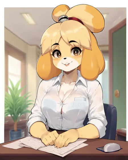 1girl, solo, isabelle (animal crossing), blonde hair, animal ears, furry