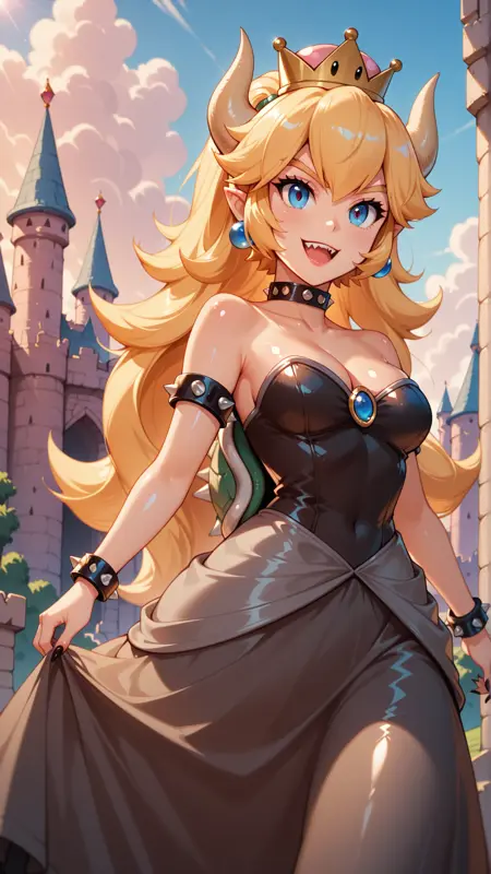 프린세스 피치 프롬프트 없이 가중치 1로 두면, 프린세스 피치의 신체형태, 헤어스타일, 파란 눈을 적용하고, 모든 갑옷/복장에 그녀의 분홍 드레스 스타일을 동적 방식으로 적용합니다. 가중치 0.7 이하에서는 입술과 신체형태를 일부 추가하고, 0.8/0.9에서는 프린세스 피치의 특징을 더 많이 추가합니다. 그러나 이는 다른 캐릭터를 사용할 수 없다는 뜻이 아닙니다. 이 LoRA는 일반적으로 다른 캐릭터 아래에 숨어들어가며 프린세스 피치 자체를 강제로 밀어내지 않습니다.