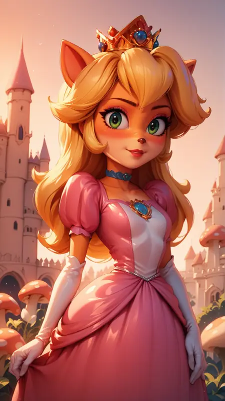 프린세스 피치 프롬프트 없이 가중치 1로 두면, 프린세스 피치의 신체형태, 헤어스타일, 파란 눈을 적용하고, 모든 갑옷/복장에 그녀의 분홍 드레스 스타일을 동적 방식으로 적용합니다. 가중치 0.7 이하에서는 입술과 신체형태를 일부 추가하고, 0.8/0.9에서는 프린세스 피치의 특징을 더 많이 추가합니다. 그러나 이는 다른 캐릭터를 사용할 수 없다는 뜻이 아닙니다. 이 LoRA는 일반적으로 다른 캐릭터 아래에 숨어들어가며 프린세스 피치 자체를 강제로 밀어내지 않습니다.