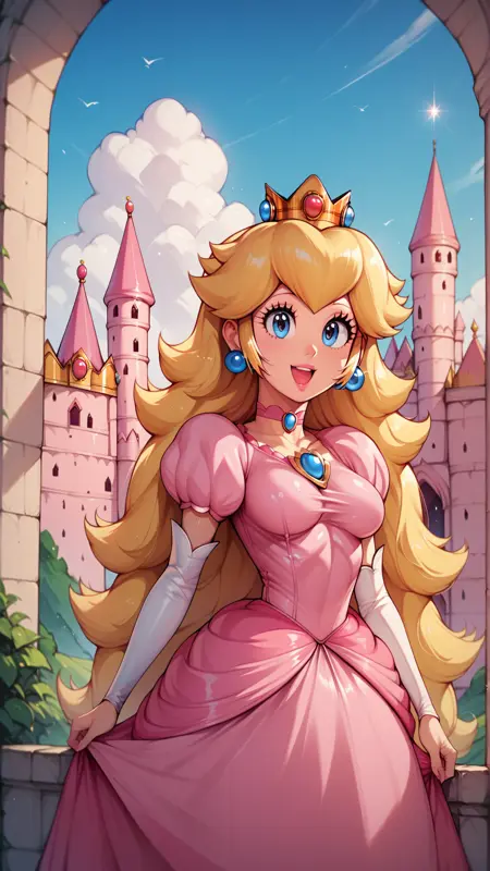 **Princess Peach [Shiny Style] V3:**This lora is a teeny bit heavier, instead of 0.8 I say go for 0.7 or 0.6 instead, its trained on 760 images and seems to be rather clean now, v2 is still amazing to me but perhaps V3 will scratch another type of itch some may have with quality.