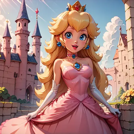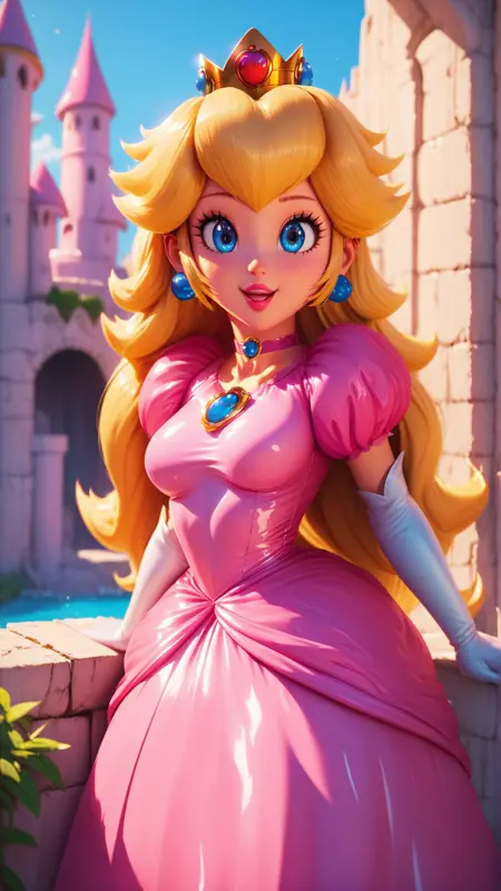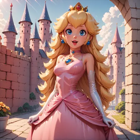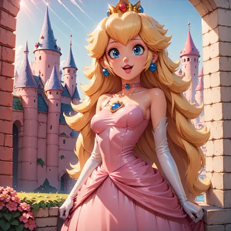 **Princess Peach [Shiny Style] V3:**This lora is a teeny bit heavier, instead of 0.8 I say go for 0.7 or 0.6 instead, its trained on 760 images and seems to be rather clean now, v2 is still amazing to me but perhaps V3 will scratch another type of itch some may have with quality.