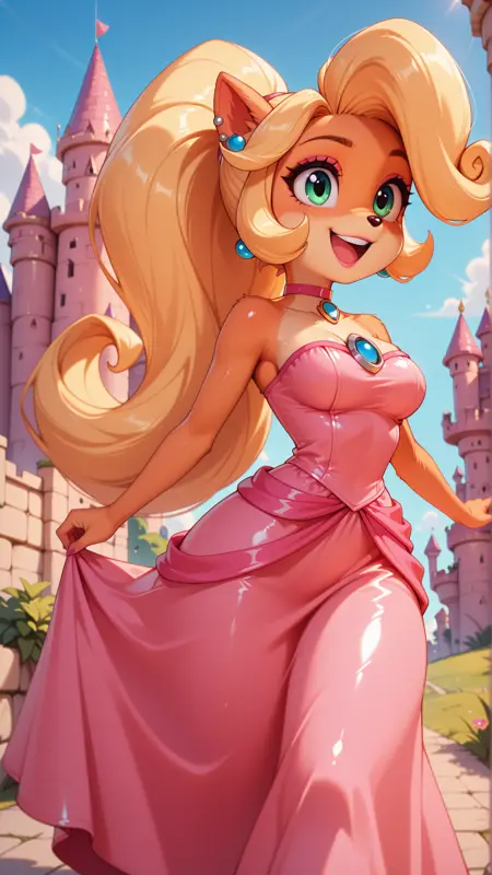 This lora DOES seem to be able to do other characters besides princess peach and keep the style, but since the ENTIRE dataset was princess peach I wont label this as a style lora since I cant guarantee anything. It seems to want to put a pink dress on everything(at weight of 1) but it can be prompted out, but choker,gloves,crown,dress may push harder for her normal pink dress than without this lora of course.