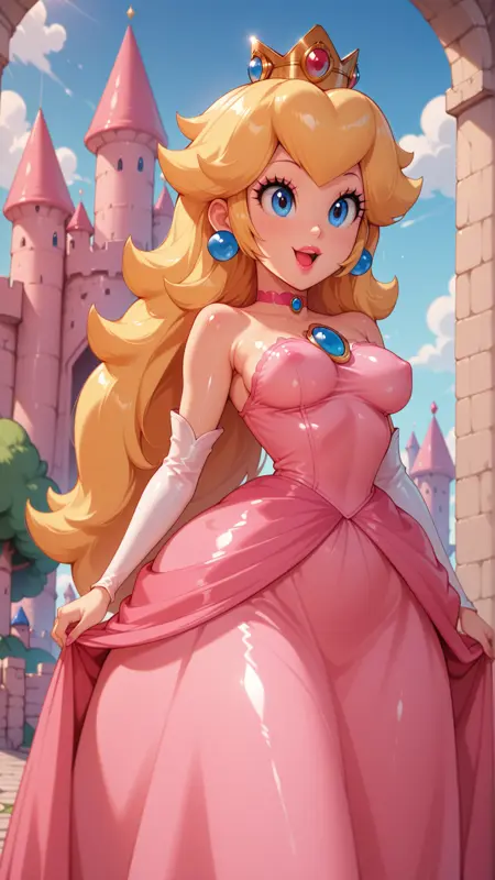 **Princess Peach [Shiny Style] V3:**This lora is a teeny bit heavier, instead of 0.8 I say go for 0.7 or 0.6 instead, its trained on 760 images and seems to be rather clean now, v2 is still amazing to me but perhaps V3 will scratch another type of itch some may have with quality.