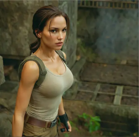 I have upload the example Lara image for your test, if you want the temple background, put the temple prompt in the text box.