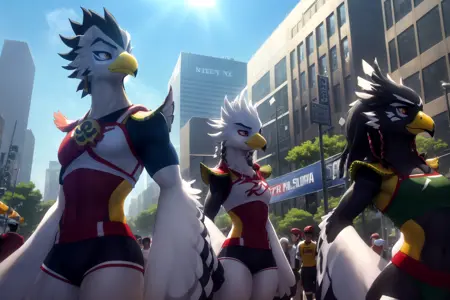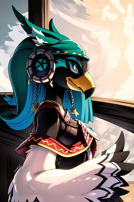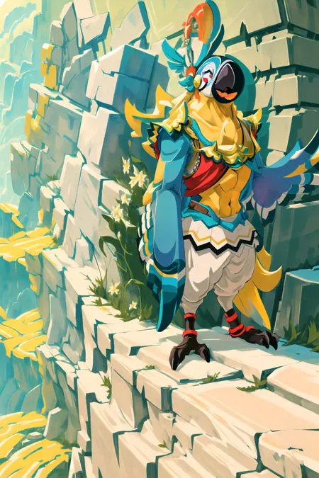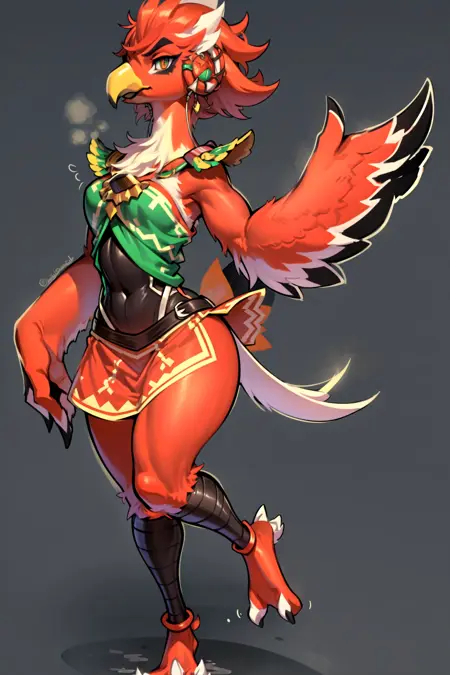 若要生成上述6位角色中的一位,建议在提示词中加入角色的体型颜色和性别,例如 (Revali male dark_blue_body),相比仅写“Revali”会更稳定。