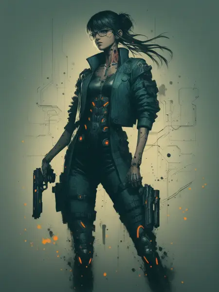 this time I have a cyberpunk splash art LoRA for you. It's trained on cyberpunk themed images in orange and teal coloring. So it's has a natural bias towards this look, but with proper prompting you should be able to easily change the coloring or the theme of the image.