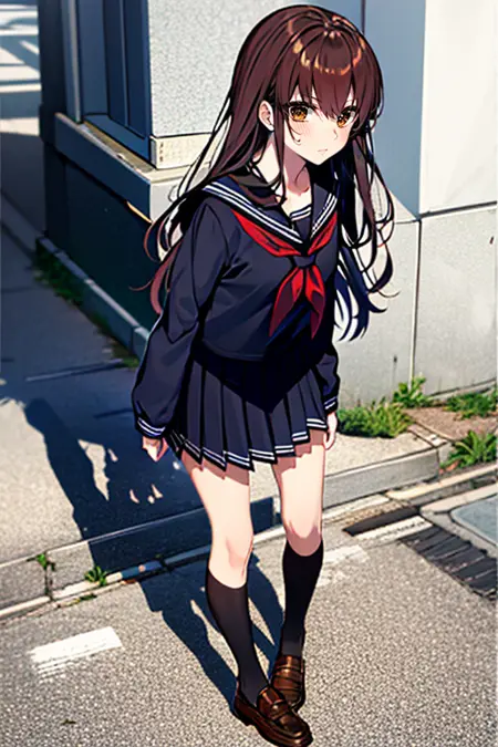 This is the character Lot\ra of Kishinami Hakuno, the female protagonist of the Fate/EXTRA series.There are two types of outfits.If you put on a brown jacket, they will wear a blue bow tie without writing in the prompt, but the color of the skirt may be different.If you are putting on a sailor suit, it may be a different color even if the prompt says black or blue.The trigger word is hakunon.