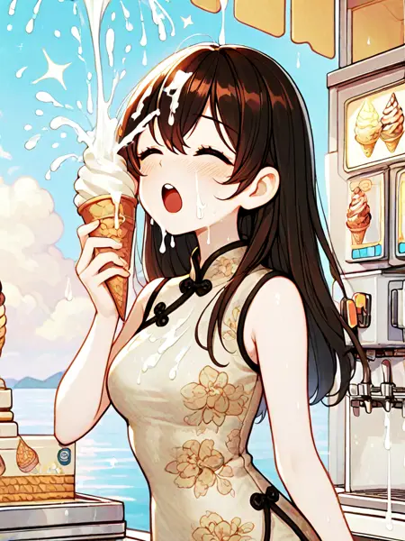 참고: 아이스크림 위에 체리를 원하면 'cherry'를 추가하세요. 손가락은 안정적이지 않습니다. (SD 1.5)
