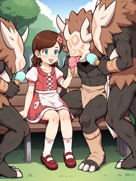As I expected, Pony XL does a much better job of getting the details right. But it has proportions issues and keeps drawing the skirt too short. I was kinda surprised that Pony XL recognizes Hilichurls, but I guess I shouldn't be. Even though it doesn't recognize capybaras. I'm not really satisfied with these results, but I don't want to waste anymore time on this.