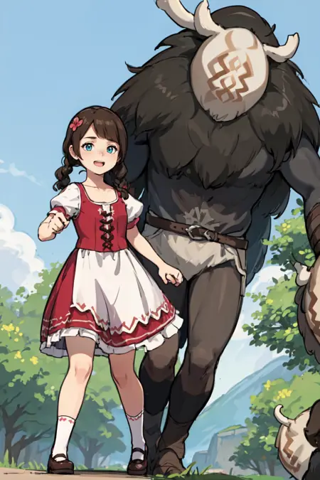 As I expected, Pony XL does a much better job of getting the details right. But it has proportions issues and keeps drawing the skirt too short. I was kinda surprised that Pony XL recognizes Hilichurls, but I guess I shouldn't be. Even though it doesn't recognize capybaras. I'm not really satisfied with these results, but I don't want to waste anymore time on this.