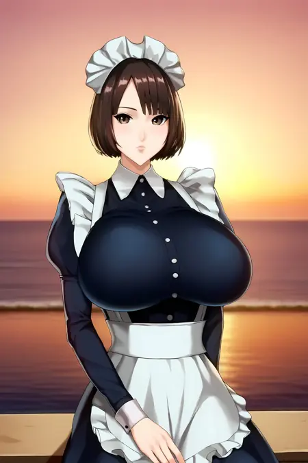 トリガー語:ショートヘア、ボブカット、前髪、(非対称前髪)、茶髪、(黒髪:0.6)、(茶色の目)、唇、巨大な胸