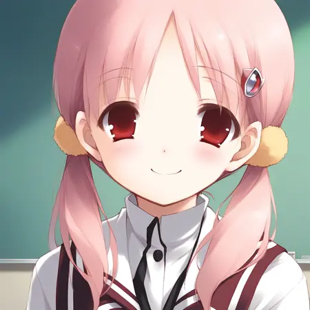 KiriyamaSakura, pink hair, flat chest, red eyes, hair ornament,