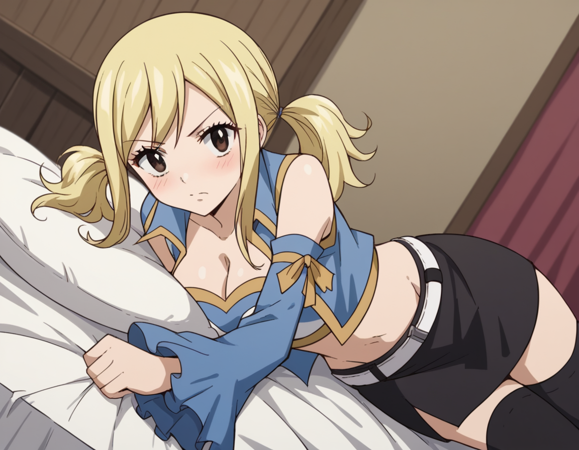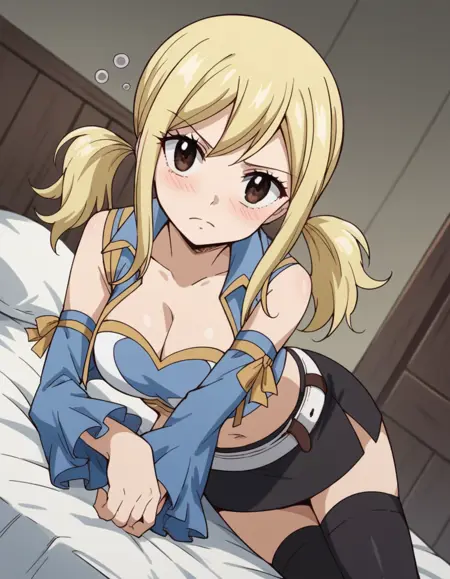 lucy heartfilia, blonde hair, brown eyes, twintails, low twintails, long hair, sidelocks,