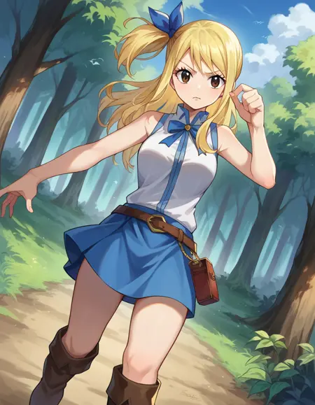 lucy heartfilia, blonde hair, brown eyes, one side up, ribbon, hair ribbon, blue ribbon, long hair,