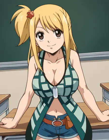 lucy heartfilia,金发,棕眼,一侧高束,丝带,发带,蓝色丝带,长发,