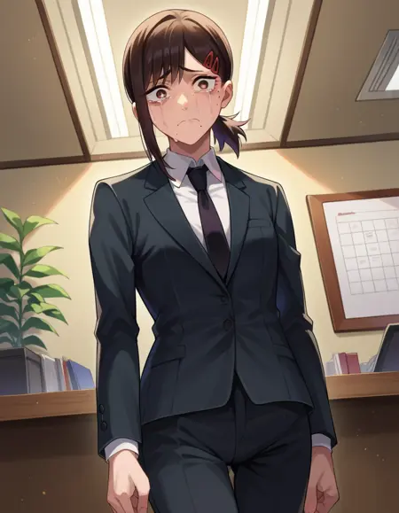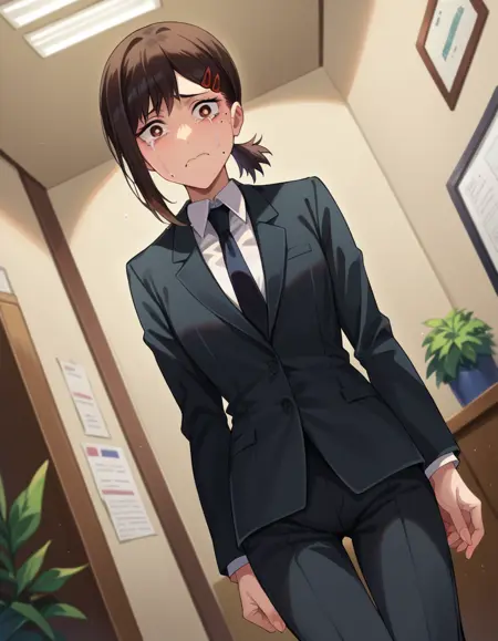 东山小百合,黑发,发饰,发夹,痣,眼下痣,马尾辫,短发,棕眼,