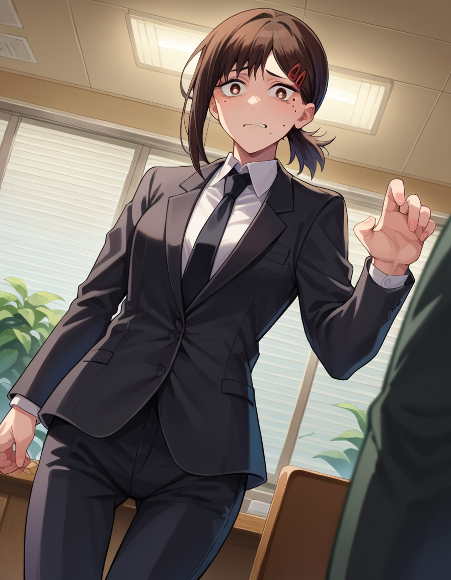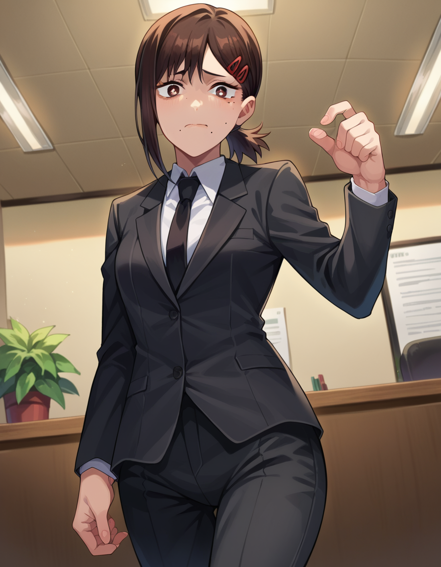 kobeni higashiyama, black hair, hair ornament, hairclip, mole, mole under eye, ponytail, short hair, brown eyes,