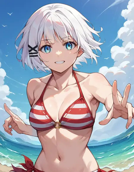 siesta、短髪、前髪、青い目、髪飾り、白髪、ヘアクリップ、