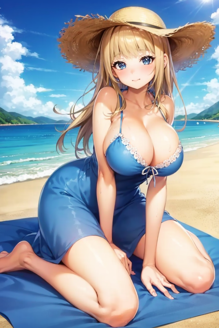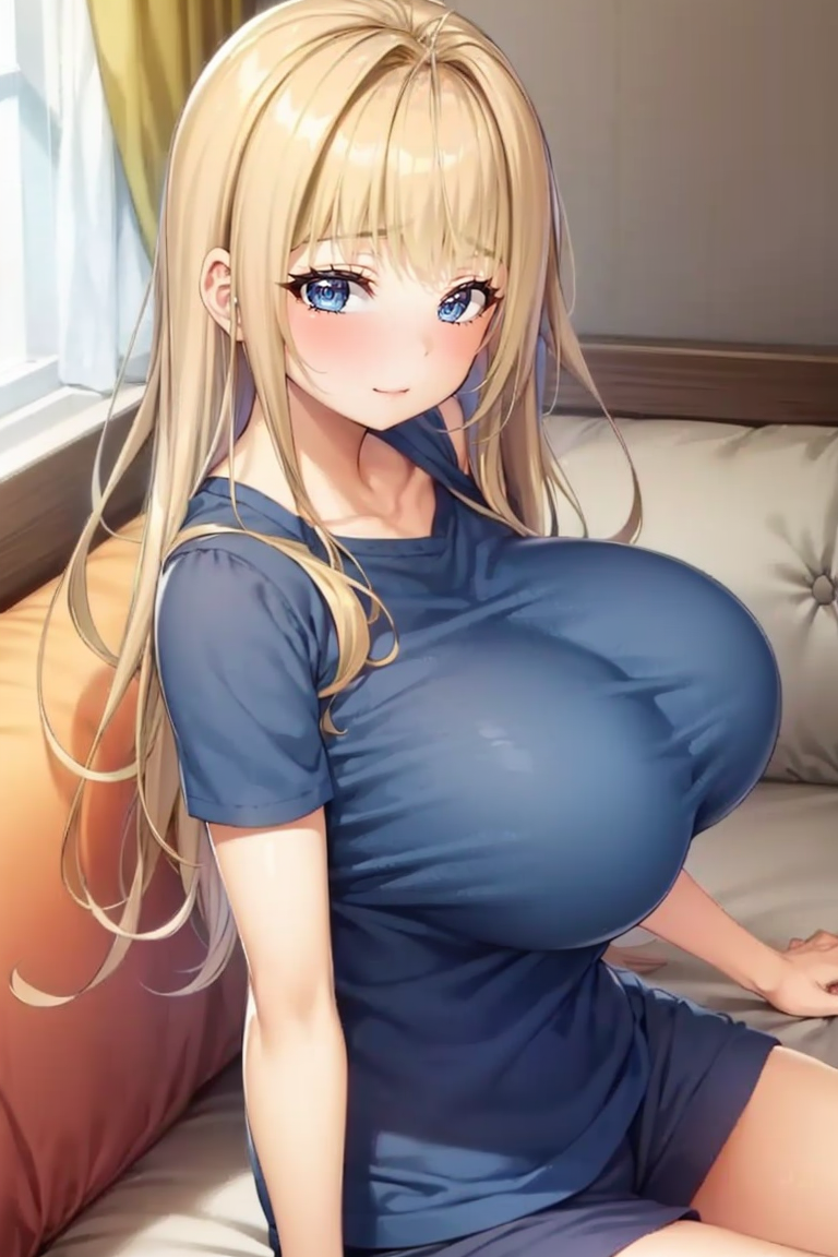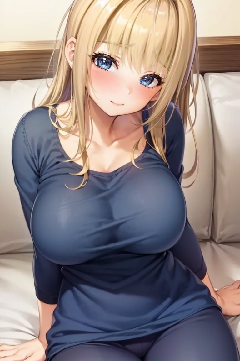 trigger: Takasato Aoi, mature female, blonde hair, long hair, bangs, (ahoge:0.2), blue eyes, ringed eyes, (large breasts:1.2)