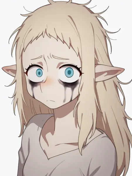 Drunk prompts : bakaradrunk, pointy ears, bags under eyes, blush, messy hair, runny makeup