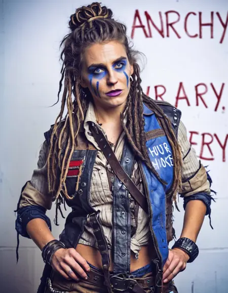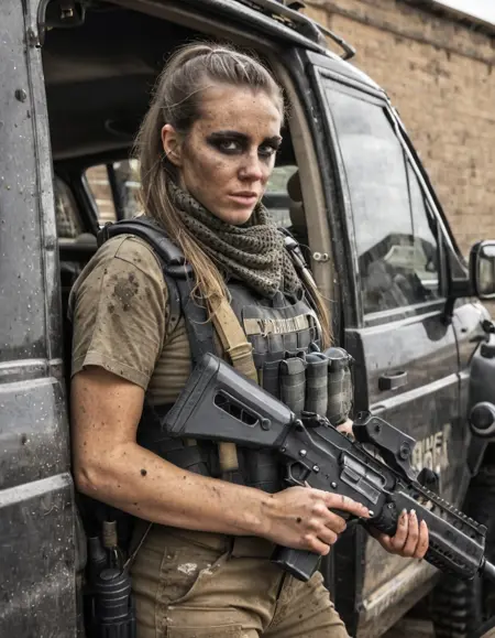 使用此Lora激发仅存于后末日世界中的原始生存能量与粗粝美学。使用中景、全身照、肖像照、特写、远景