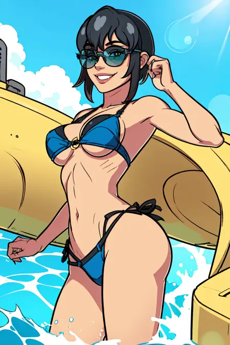 Trigger Bikini : 1girl, short hair, o-ring bikini, sunglasses
