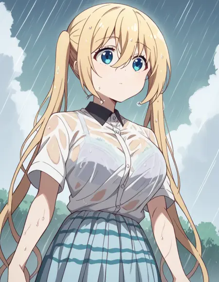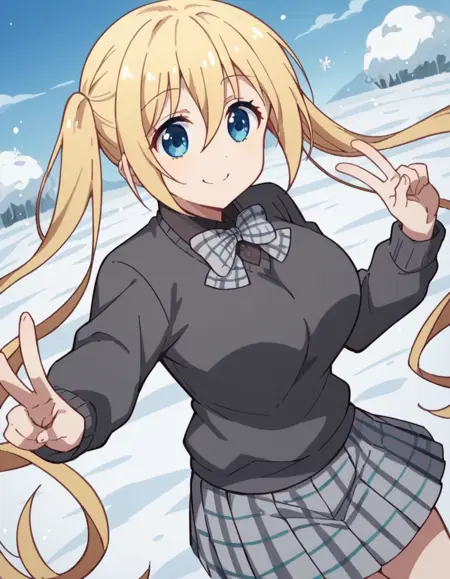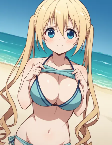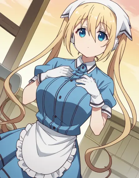 kaho hinata, blonde hair, blue eyes, hair between eyes, long hair, sidelocks, twintails,