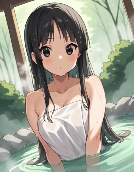 mio akiyama, long hair, bangs, black hair, black eyes, hime cut,