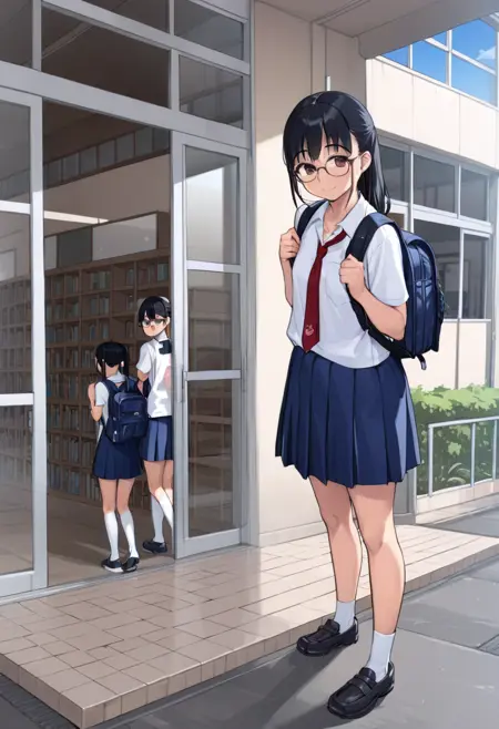 这是一个可能描绘日本学校建筑中常见入口景观的LoRA。