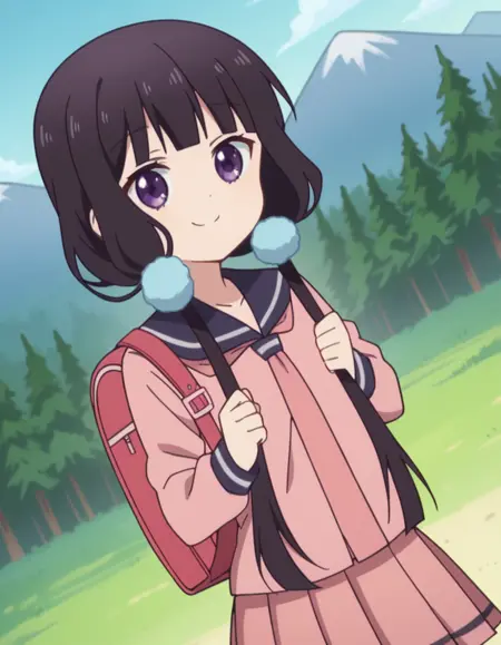 maika sakuranomiya, long hair, black hair, hair ornament, twintails, purple eyes, low twintails,