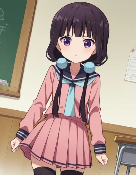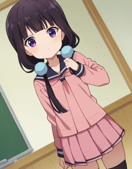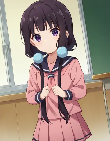 maika sakuranomiya, long hair, black hair, hair ornament, twintails, purple eyes, low twintails,