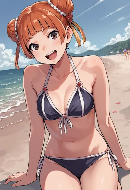 laufen, 앞머리, 더블 둥근 머리묶음, 주황색 머리, 갈색 눈