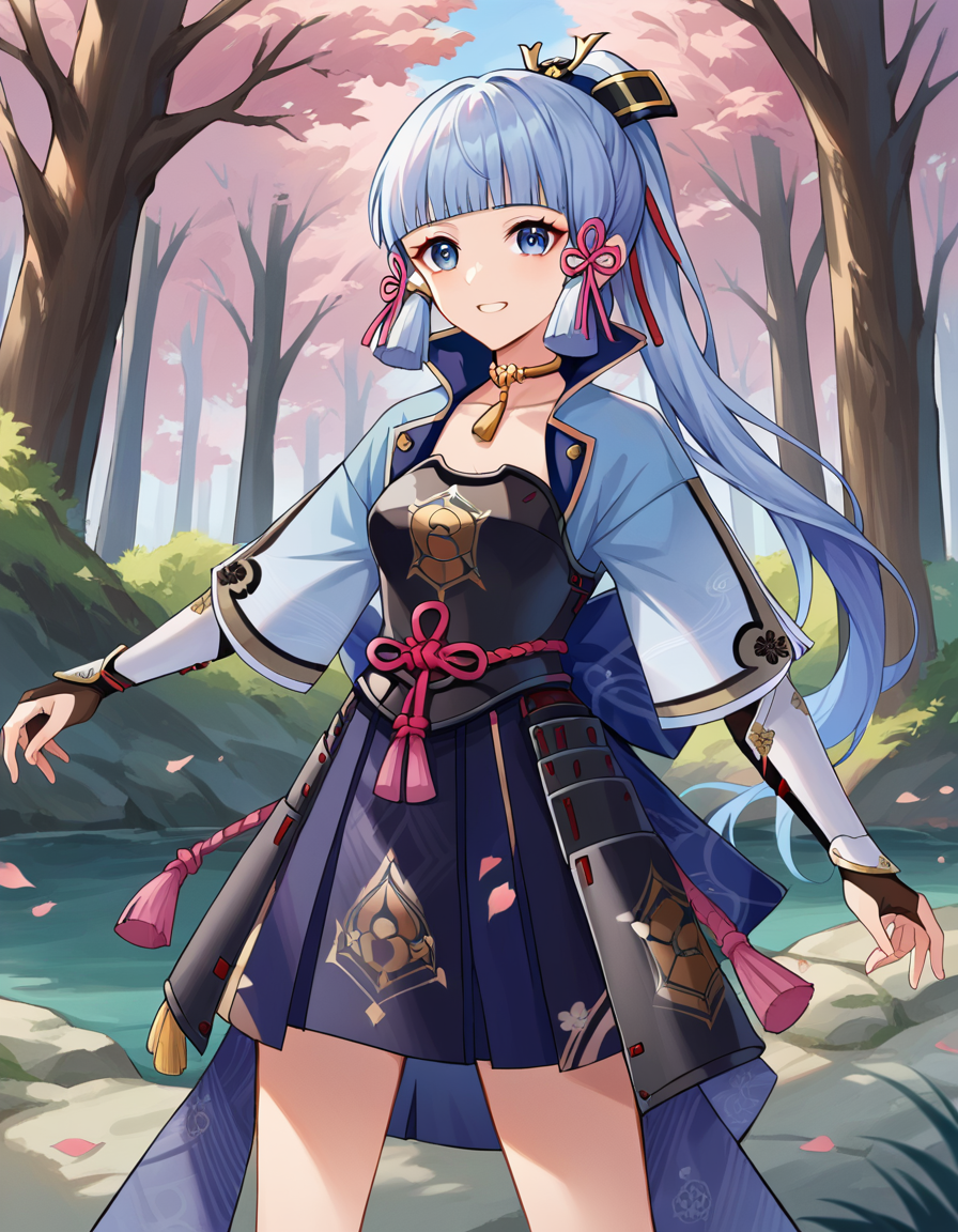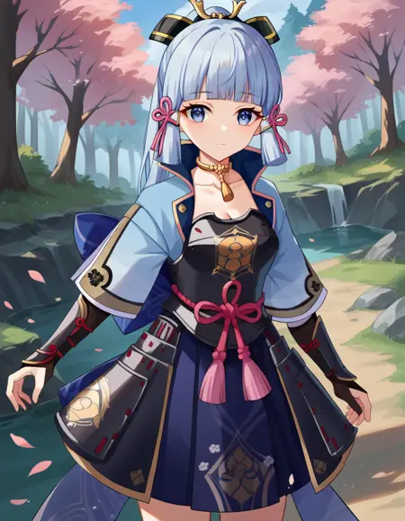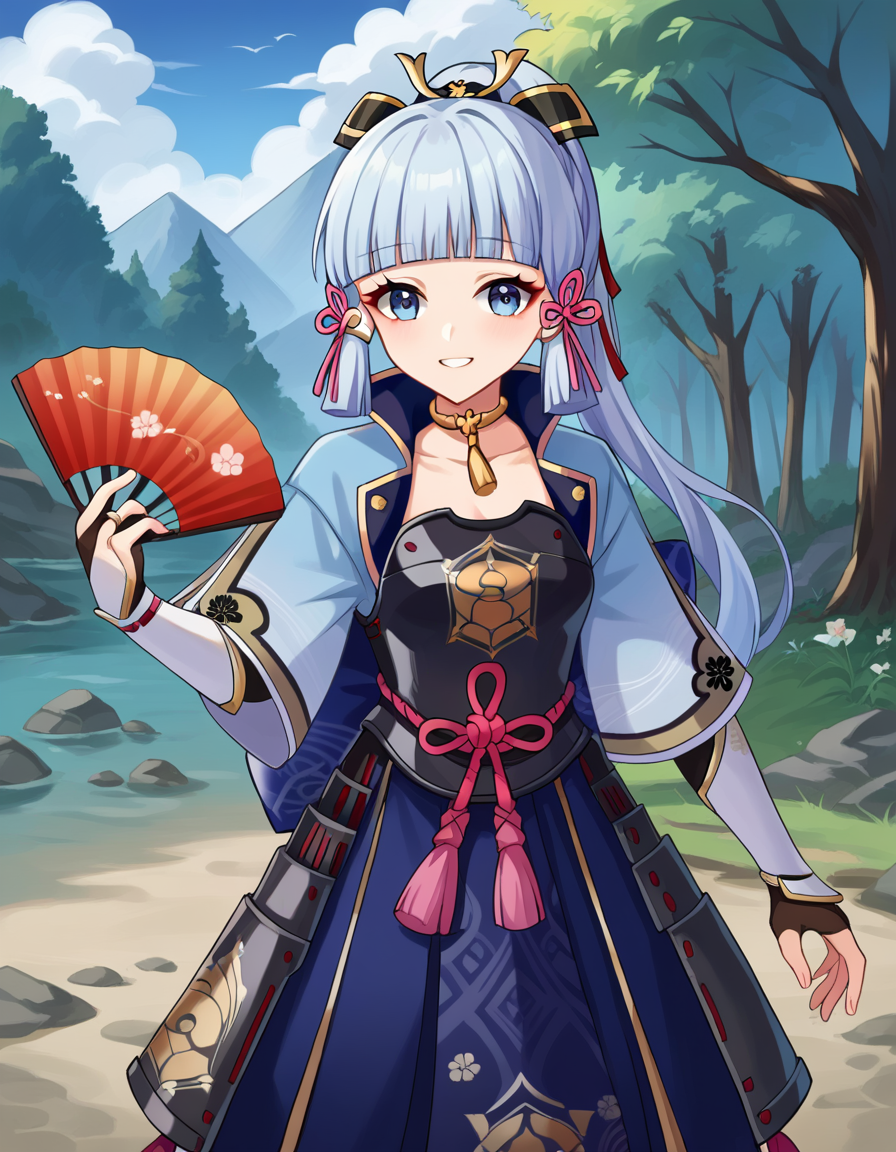 ayaka kamisato, blunt bangs, blue eyes, blue hair, hair ornament, hair ribbon, hair tubes, long hair, ponytail, tress ribbon,