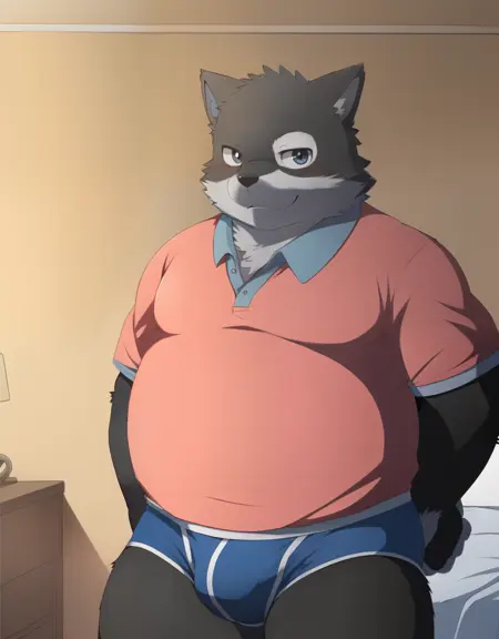 関連単語:黒い毛、白い毛、二色毛、体毛、短い髪、黒い目、犬の尾、犬の少年、犬の耳、動物の耳、動物の鼻、吻、シャツの襟、ピタッとしたシャツ、一部ボタンが外れた、デニム、ジーンズ、男性用下着