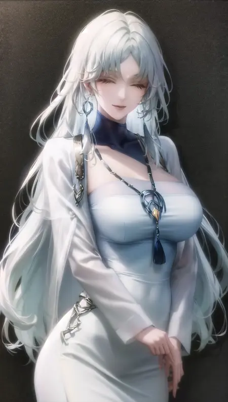 无期迷途-杜若-closed eyes or aqua eyes,high-waist skirt, open clothes, turtleneck.safetensors