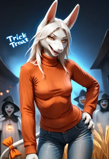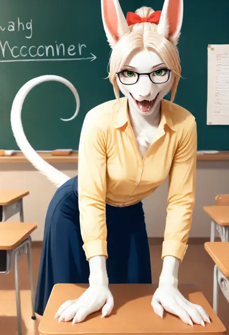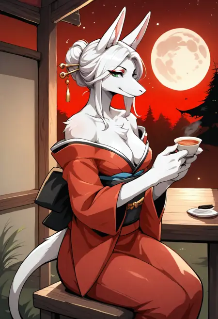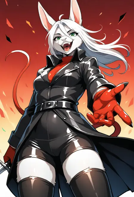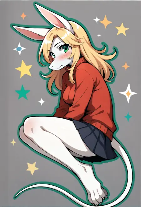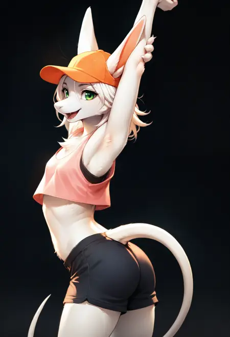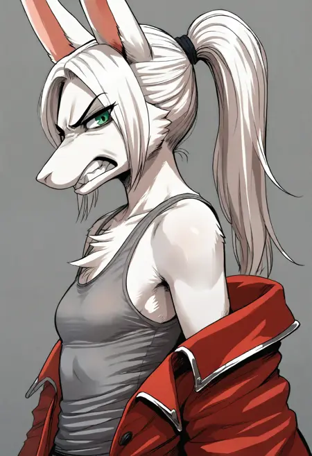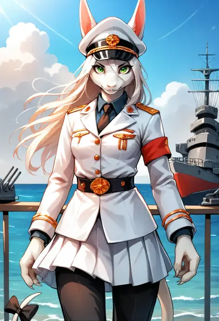 FreyaC, female, white fur, white hair, green eyes, tail,