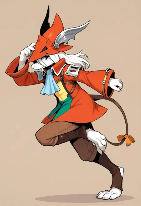 • Default Outfit: red dragoon hat, red dragoon coat, ascot, dragoon tabard, orange dragoon pants, orange tailbow, brown gaiters,