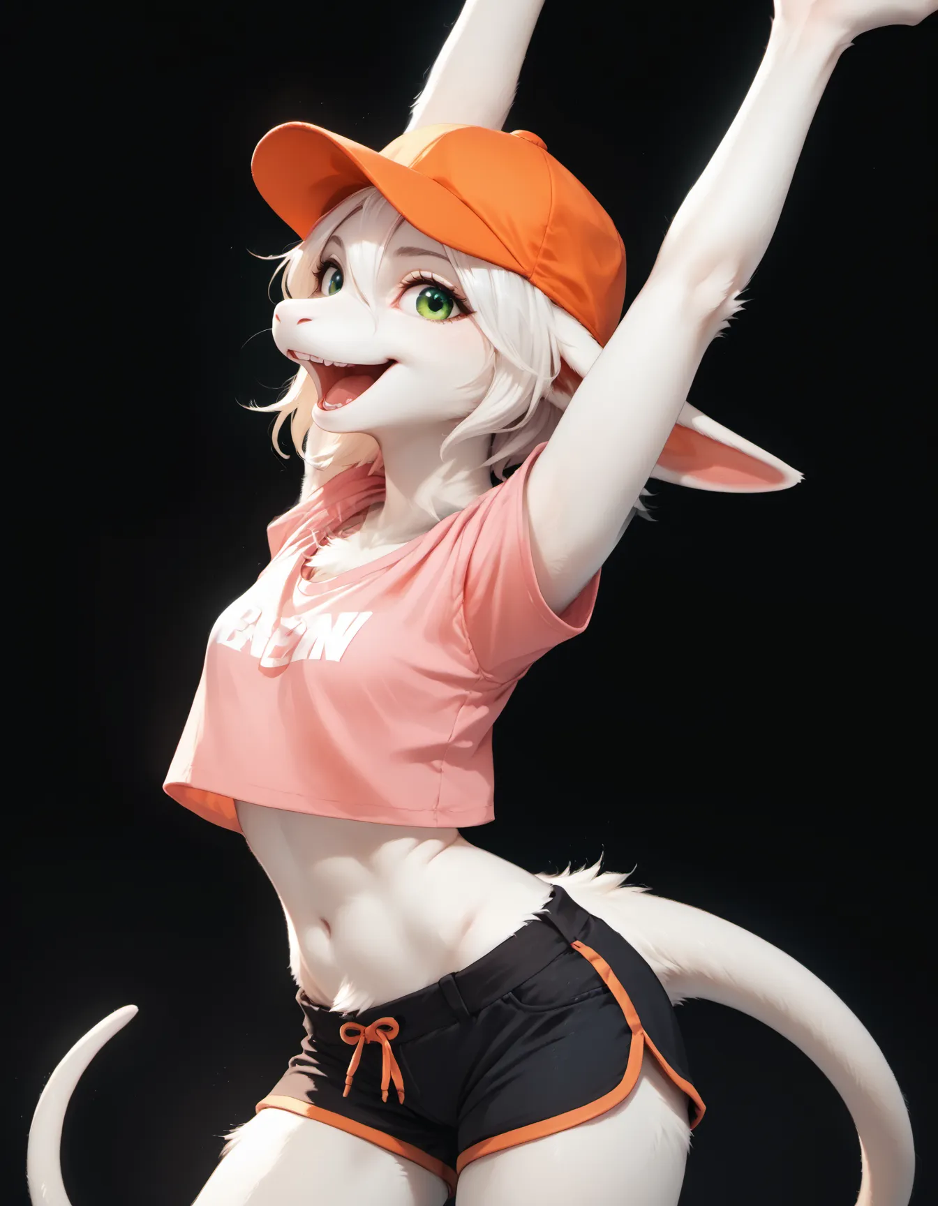 FreyaC, female, white fur, white hair, green eyes, tail,