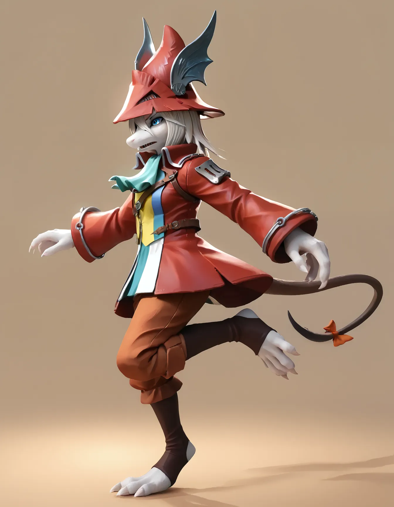 Default Outfit: red dragoon hat, red dragoon coat, ascot, dragoon tabard, orange dragoon pants, orange tailbow, brown gaiters,